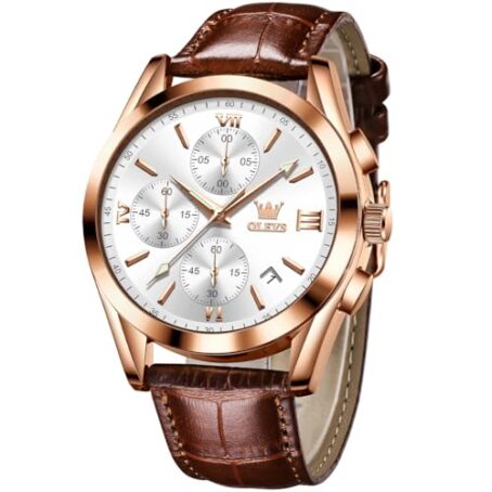 男性用腕時計 ブルーダイヤル ブラウンレザー 薄型 ビッグフェイス アナログ クォーツ カレンダー 曜日 日付 防水 発光 男性 ラグジュアリー カジュアル, ローズゴールド シルバー 2872, メンズ腕時計。