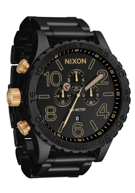 NIXON 51-30 クロノ A1389-300m 防水 メンズ アナログ ファッションウォッチ (51mm ウォッチフェイス、25mm ステンレススチールバンド), マットブラック/ゴールド。, オーバーサイズ