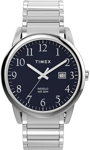 Timex メンズ イージーリーダー 40mm 腕時計 – シルバートーン拡張バンド ブルーダイヤル シルバートーンケース, シルバー